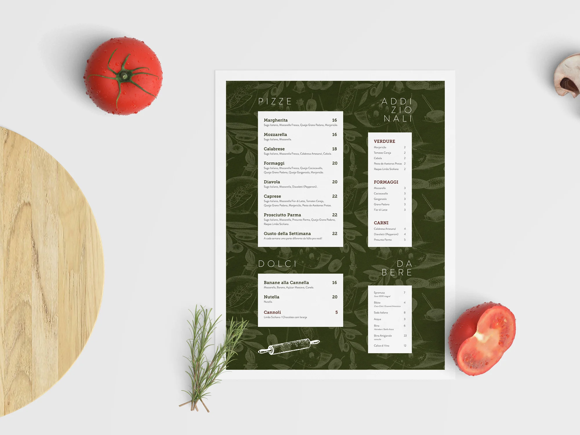 Com nome e conceito definidos pelo fundador, desenvolvemos o branding completo da marca, estruturando identidade visual, logotipo e toda a sua expressão nos pontos de contato. A construção da linguagem buscou se afastar dos códigos mais evidentes do universo italiano, explorando caminhos visuais mais sutis, com uso de cores e elementos não óbvios, reforçando um posicionamento mais contemporâneo e autoral.