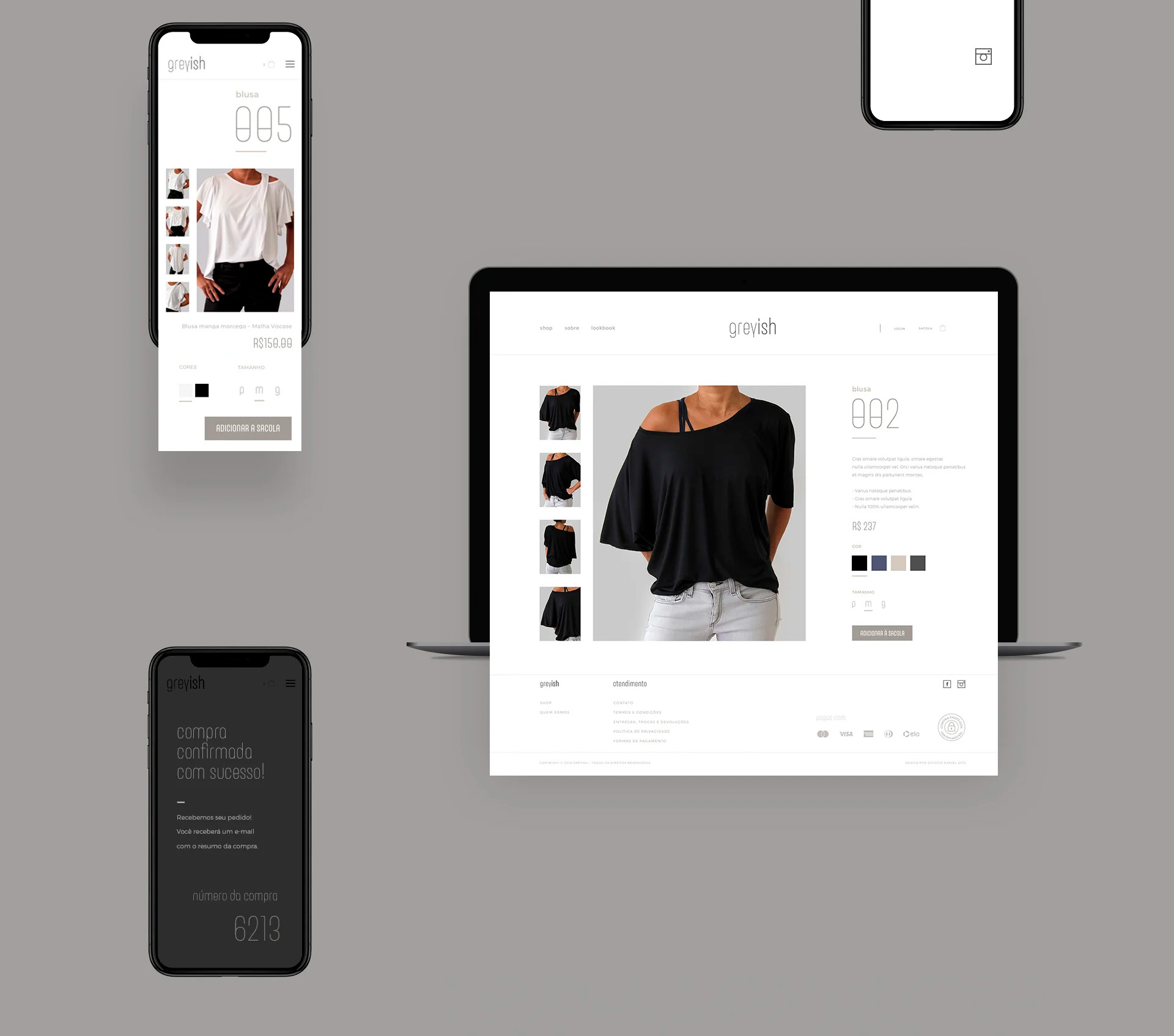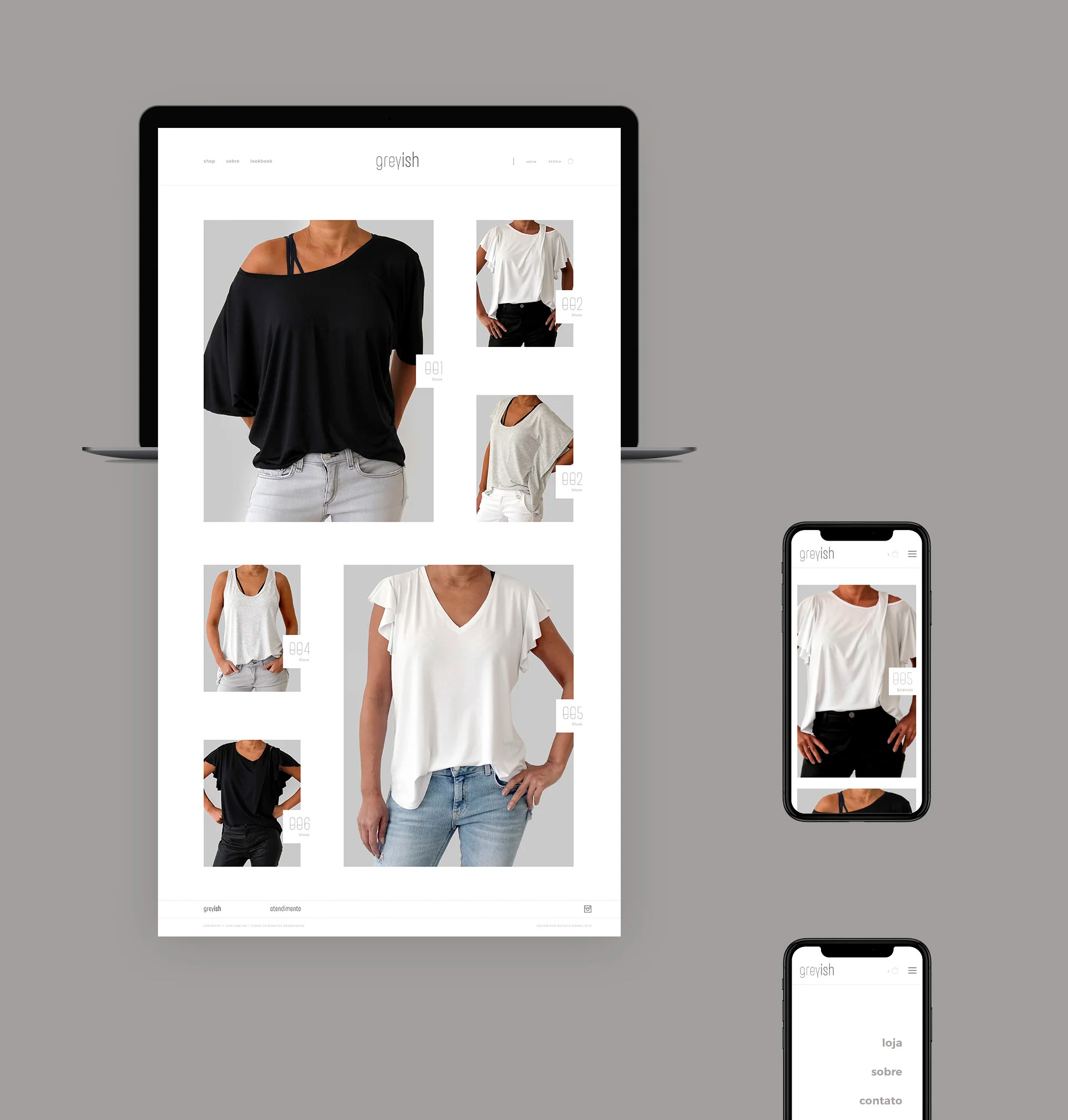A Greyish surge a partir de uma visão já definida pela fundadora: criar uma marca de moda com base no essencial, mas com forte presença estética, qualidade e direcionamento para um público mais seleto. O nome e o conceito inicial já existiam. O desafio era transformar essa intenção em uma marca estruturada, com linguagem própria e posicionamento consistente.